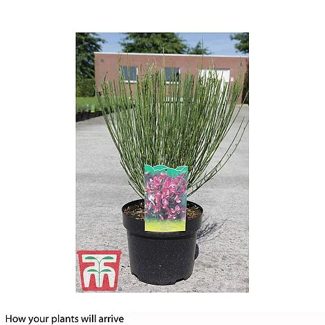 A small deciduous shrub that shows itself off wonderfully in early summer with a profuse covering of cream and crimson flowers, Cytisus ‘Hollandia’ is an easy to keep variety of Broom. Tolerant of most soil types and conditions although best grown in full sun to really show of its potential, this plant is a valuable addition to the back of a border or as part of a shrub collection. Height: 150cm (59″). Spread 150cm (59″).