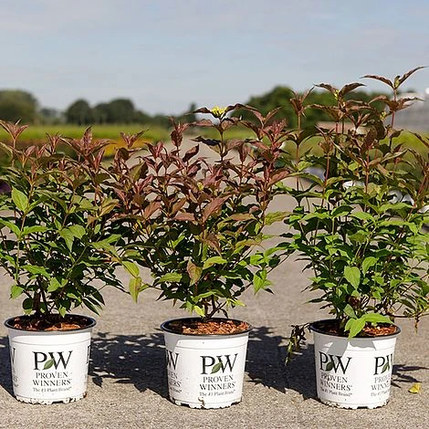 A very tough and reliable shrub that is valued for its bright spring and autumn foliage colour and is especially useful in partially shaded borders and difficult soils. It requires virtually no maintenance and is drought tolerant once established, adapting to almost any situation. Forms a bushy, mounding shrub covered in lance shaped leaves which are deep burgundy in the spring, maturing to green with red margins. In autumn the foliage turns vivid red. In early to late summer, it bears clusters of small tubular yellow flowers which are a magnet for insects. Grow as a single specimen, a low hedge or in massed plantings. It is also a popular filler for flower arrangements. Height: 90 -120cm (3-4ft). Spread: 120-150cm (4-5ft).