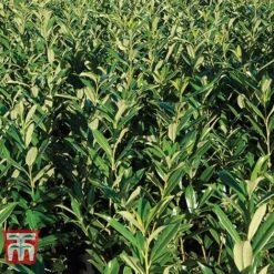 Better known as the Cherry Laurel, this dense evergreen shrub makes a popular hedging plant. The large glossy, rounded leaves form a lovely backdrop for the elegant creamy white flower spikes in Spring. The fragrant blooms are a magnet for pollinating insects. As the flowers fade, glossy cherry-red berries take their place, providing food for hungry birds. Prunus laurocerasus ‘Rotundifolia’ is a useful shrub growing equally well in full sun or in the shade of mature trees. This handsome RHS AGM variety makes a superb low maintenance specimen plant for borders, woodland areas and wildlife gardens. Height: 5m (16′). Spread: 4m (13′).