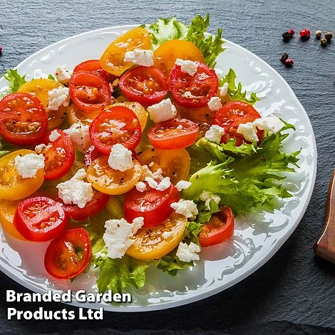 ‘Dora Orange’ is a cute little cherry tomato with fruits shaped like a heart. This compact tomato is only 40cm high and perfect for growing in a container and small spaces making an attractive plant covered in an abundance of tender-skinned, golden orange fruit.