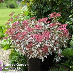 Exceptionally glossy foliage makes this a handsome specimen plant. Grown as a large shrub or small tree, its evergreen leaves have a polished appearance that shows off its fragrant, white blooms to perfection each spring. The flowers are borne in cones-shaped panicles which are later replaced by red berries, that ripen to black. Viburnum odoratissimum var. awabuki enjoys a sheltered position away from cold, drying winds. It makes a superb screening shrub and provides colour and interest throughout the year. Height and spread: 5m (16’).